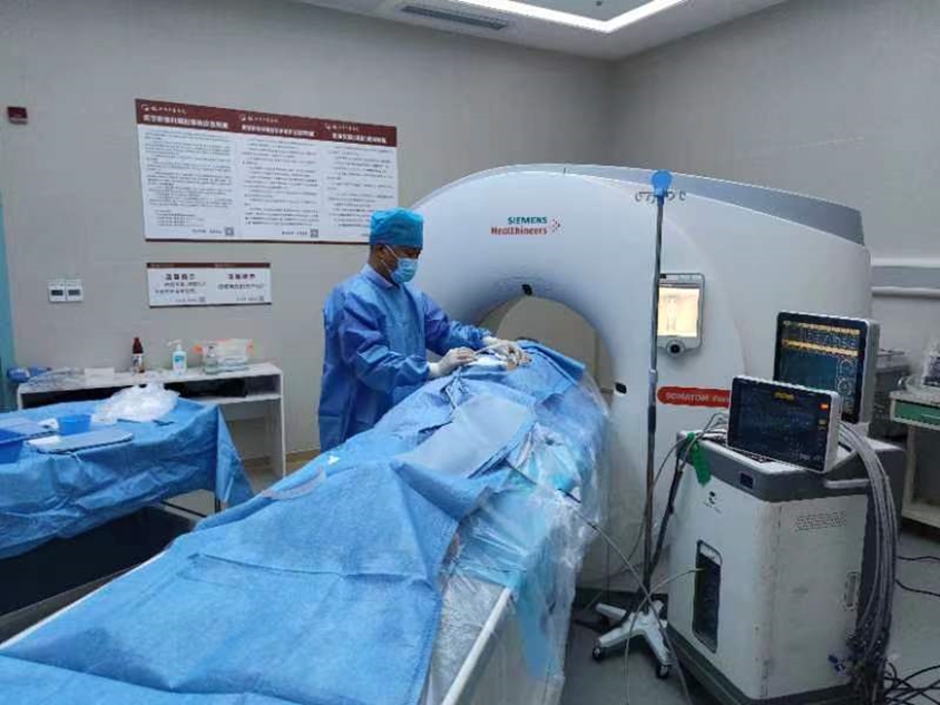隨后,由王厚生主持臨沂市中醫(yī)醫(yī)院腫瘤微創(chuàng)學(xué)術(shù)沙龍。牛洪欣作“非血管介入技術(shù)在腫瘤綜合治療中的應(yīng)用”報告,日照市人民醫(yī)院單裕清作“MDT理念在肺結(jié)節(jié)干預(yù)選擇中的作用探討”報告,王厚生作“腫瘤微創(chuàng)在臨床中的案例分享”報告。濟寧醫(yī)學(xué)院附屬醫(yī)院劉松教授、臨沂市中心醫(yī)院黃兆棟教授、山東醫(yī)專附屬醫(yī)院孫富文主任等業(yè)內(nèi)專家參與了互動及問題討論。會后,牛洪欣、王厚生于臨沂市中醫(yī)醫(yī)院高鐵院區(qū)CT室進行手術(shù)演示。