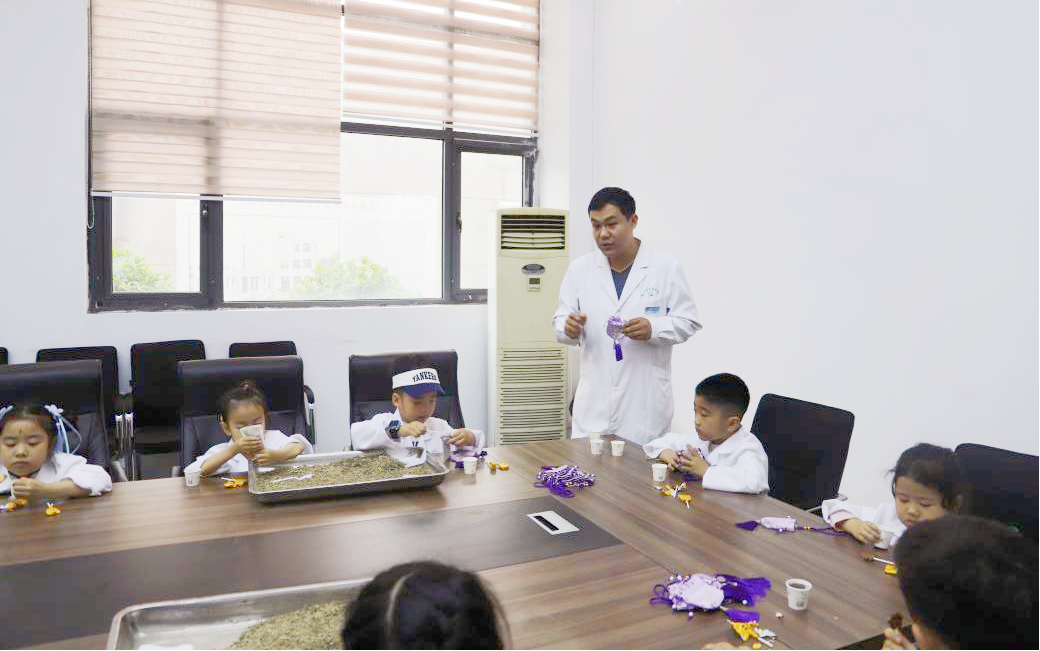 接下來小朋友們來到瑯琊中醫(yī)藥博物館,在朱玉蘋藥師的帶領(lǐng)下參觀了博物館,切身感受了一番中醫(yī)藥這一文化瑰寶的魅力。在“小藥師體驗區(qū)”,共煎中心劉俊文、郭輝兩位藥師帶領(lǐng)“小藥師”們品嘗夏日解暑開胃中藥飲品——酸梅湯,同時向他們講解辨識“藥食同源”的中藥材。此外“小藥師”們還親自動手制作了防蚊香囊,在實(shí)踐中感受中醫(yī)藥文化的傳統(tǒng)魅力。