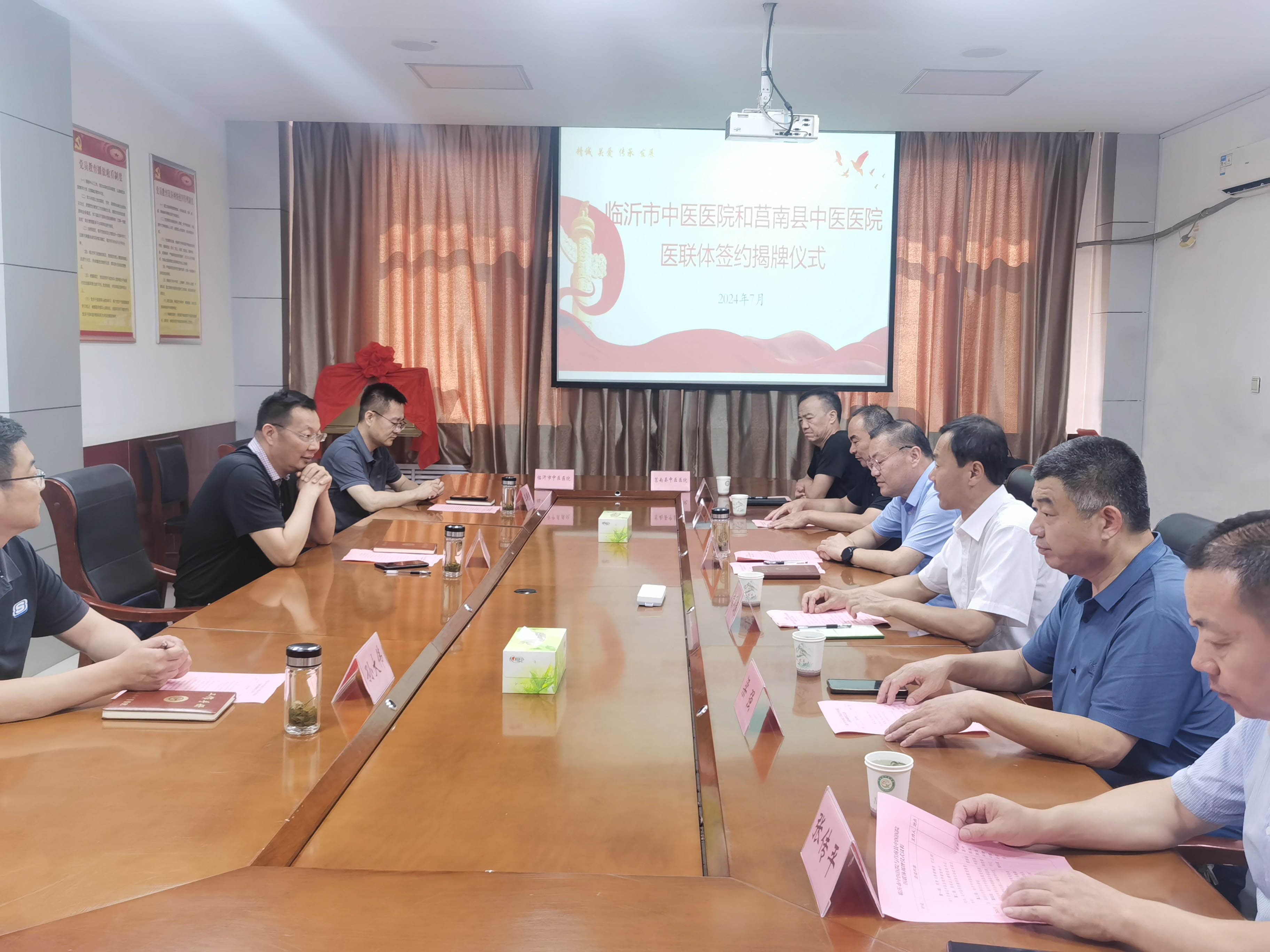 2024年7月30日,我院與莒南縣中醫(yī)醫(yī)院舉行醫(yī)聯(lián)體簽約揭牌儀式。臨沂市中醫(yī)醫(yī)院黨委委員、副院長何勇同志,莒南縣衛(wèi)健局黨組書記、局長、縣中醫(yī)藥管理局局長孫欽東同志,臨沂市中醫(yī)醫(yī)院解放路院區(qū)副院長、醫(yī)務(wù)部主任王明杰同志,莒南縣中醫(yī)醫(yī)院黨委書記褚鳳超同志,莒南縣中醫(yī)醫(yī)院班子成員、部分科室負(fù)責(zé)同志出席儀式。